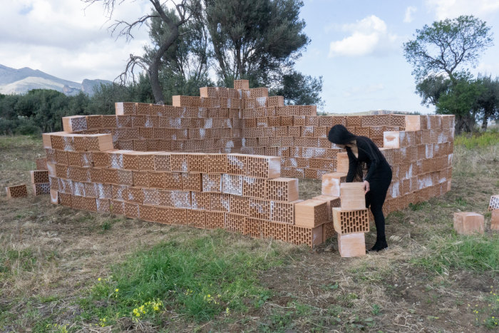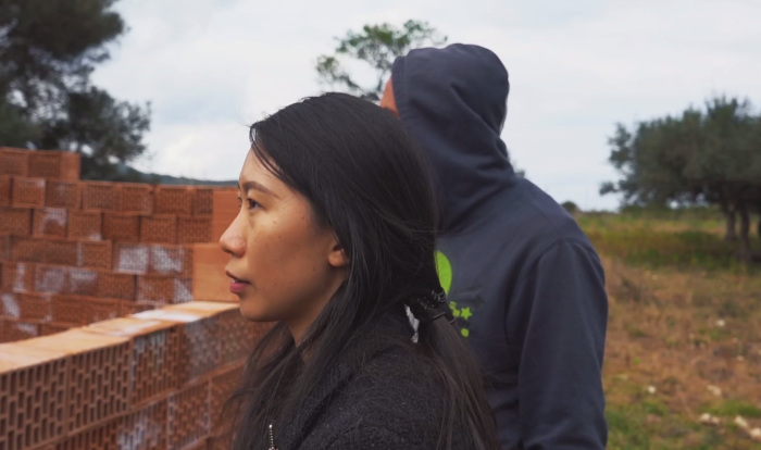 Da qualche tempo Zhenru Liang si sposta continuamente dal suo cerchio abitativo, prima Milano adesso Berlino, per trovare luoghi che possano costituire una sua azione. I suoi luoghi non sono mai eclatanti, semmai palesemente banali rispetto ad un monumento da enciclopedia dell'arte, ma costituiscono il centro del suo interesse. Luoghi in cui si consuma una normalità ancora legata ai cicli della natura, dove il mondo lo si vede per quello che è, i cui segni sono legati alle stagioni, alle settimane, nei cui confronti si dimostra attenzione e apprensione. Sono luoghi in cui sopravvive un solido fatalismo che esplode in ilarità colloquiale anche nelle avversità del tempo e della cronaca dei giorni. Luoghi in cui permane un diverso fluire della vita. Da cui si vede la natura e anche la città. Se ne identificano le forme e ci si rallegra quando il tempo è bello ma anche quando piove, perché la pioggia è la vita. Quando Zhenru Liang trova un luogo, dopo averlo ispezionato lo assume come spazio monumentale. Sottraendo quel luogo alla sua aperta neutralità, Zhenru Liang lo espone attraverso l'agire umano. Per farlo contatta ditte di forniture edili, proprietà terriere ed eventuali partner per poter attuare il progetto. Questo consiste nel costruire qualcosa e documentare la crew che lavora alla fabbrica della messa in opera. Quindi filmare la costruzione e l'opera compiuta, entro cui l'artista si lascia fotografare, e poi documentare lo smontaggio della scultura abitabile temporanea. I materiali d'uso vengono riconsegnati alla ditta, la crew si saluta e tutto svanisce senza lasciare tracce. La ciurma che ha assistito l'artista è usualmente composta dai proprietari del luogo e relativa famiglia, da prestatori d'opera occasionale e da chi guida il mezzo di trasporto. L'occupazione dello spazio natura è come un flash fotografico. Una invasione che ha costituito un brevissimo lasso di tempo permanenza rispetto alla continuità naturale, come un noioso frusciare di un insetto all'interno di un luogo di culto. Ma in questo fastidioso ronzio, che prende forma nelle energie obbligatoriamente messe in campo - trattare la gestione, caricare un camion, scaricarlo, costruire la struttura, disassemblarla, riporla sul camion e riconsegnarla alla ditta – per pochi minuti di completezza, troviamo la misura di una forma di adesione simbolica che in sé lascia il segno.