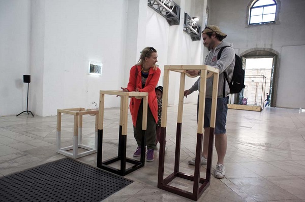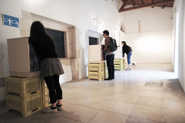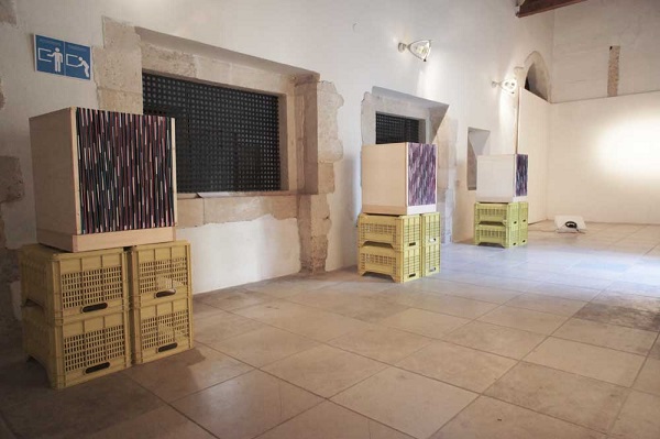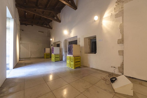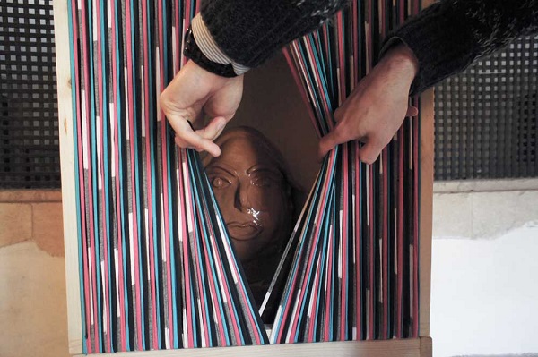 Nell’ultima stanza sono posizionati tre cubi di legno disposti paralleli e ben allineati. L’opera nasce da una rilettura dei festeggiamenti di Santa Lucia, una delle più antiche tradizioni religiose Siracusane. In questo lavoro un gruppo di persone non vedenti concretizza il volto della Santa patrona della vista, plasmando la materia con le mani. Questa esperienza conduce i soggetti partecipanti in un processo estetico nuovo, che può far parte della vita di tutti i giorni: quello di poter vedere la luce con gli occhi interni, quelli dell’immaginazione. I materiali scelti per realizzare le sculture sono la creta e la ceramica, di tradizione siciliana. Il workshop preparatorio alla mostra è servito a sensibilizzare e valorizzare l’utilizzo manuale delle tecniche artistiche tradizionali. Il pubblico che visita la mostra viene invitato ad entrare nella stanza e a introdurre le mani all’interno dei box dentro i quali sono nascoste le sculture realizzate e può guardare l’opera solo tattilmente, potendo infatti solo toccare e non vedere, immaginando il volto di Santa Lucia allo stesso modo di un non vedente. Alterando la fruizione del pubblico, si vuole porre quest’ultimo sullo stesso piano estetico e visivo di chi ha creato, senza vedere, le opere con il volto di Santa Lucia. Accanto ai box in legno, contenenti le sculture, alcuni diffusori in cuffia permettono l’ascolto delle interviste alle persone che hanno partecipato al workshop preparatorio, sulle tematiche di luce e buio, vedere e non vedere, colori e loro sensazione. Alla fine della mostra i box che custodiscono i busti vengono aperti per rendere visibile quei volti nascosti per la durata di tutta la mostra al pubblico cittadino (Fig.8).